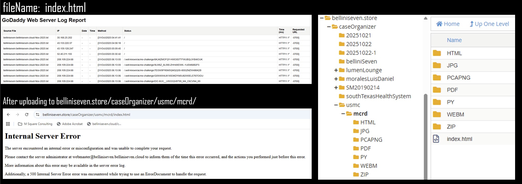 Device: iPhone XS (Jailbroken) Make: Apple Inc. IMEI: 356789045612347 Phone Number: +1 (956) 555-0198 Mobile Carrier: AT&T Wireless MAC Address: A4:5E:60:9B:3C:21 Public IP: 104.28.72.91 Cellular Protocol: GSM Custodian: Michael Reyes Case Name: Case Marines Case Path: c:/Temp/DB/caseMarines.db Audit Timestamp: 2025-11-11 14:35 CST Auditor:mayimReceiver.exe