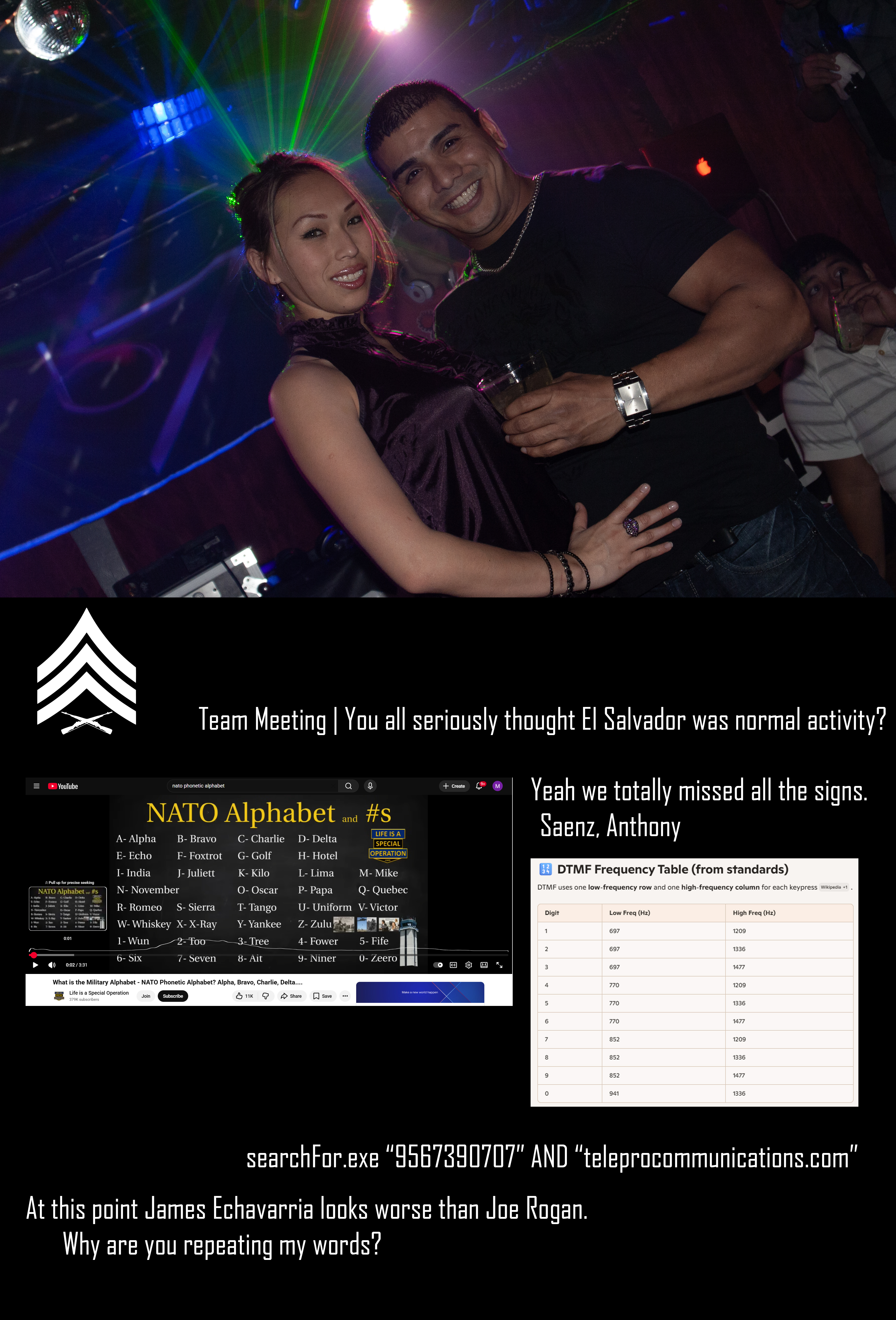 The Bellini Seven Team: "Michael called a Team Meeting. He's asking for a list of all El Salvadorians in Hidalgo County, TX. We have 15 minutes to get that list in TXT AND CSV format for import into a database for Custom HTML Portal access.